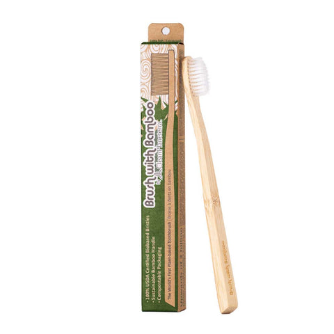 So when you swap to a bamboo toothbrush, think of how many plastic toothbrushes and plastic packaging you personally can keep out of landfills. The bamboo toothbrush will last just as long as a regular toothbrush but without all the waste harming our environment. Brush with Bamboo recommends that you compost the organic handle and recycle the bristles through a waste recycling company, like Terracycle, at the end of your toothbrush’s life.