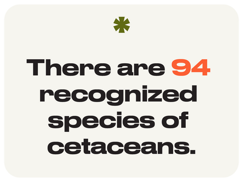 PWF: There are currently 94 recognized species of whales, dolphins, and porpoises collectively called "cetaceans" around the world.