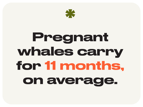 PWF: Humpback whales have a single baby, called a calf, on average every 2-3 years and are pregnant for approximately 11 months before giving birth. Growing and then nursing a calf requires a lot of energy from the mother, so it is rare for a humpback whale to give birth in successive years. In contrast, sperm whales give birth every 4-6 years, with gestation lasting 14-16 months.