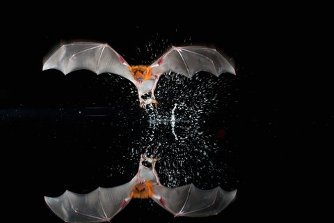 Greater Bulldog Bat (Noctilio leporinus) uses its feet to collect insects fluttering on lake surface, Barro Colorado Island, Panama. Photo by Christian Ziegler/Minden Pictures, Bat Conservation International