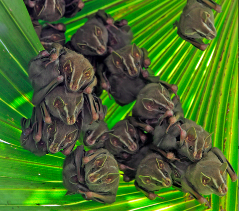 Uroderma bilobatum roosting under large leaf. Barro Colorado Island, Panama. Photo by Christian Ziegler/Minden Pictures, Bat Conservation International